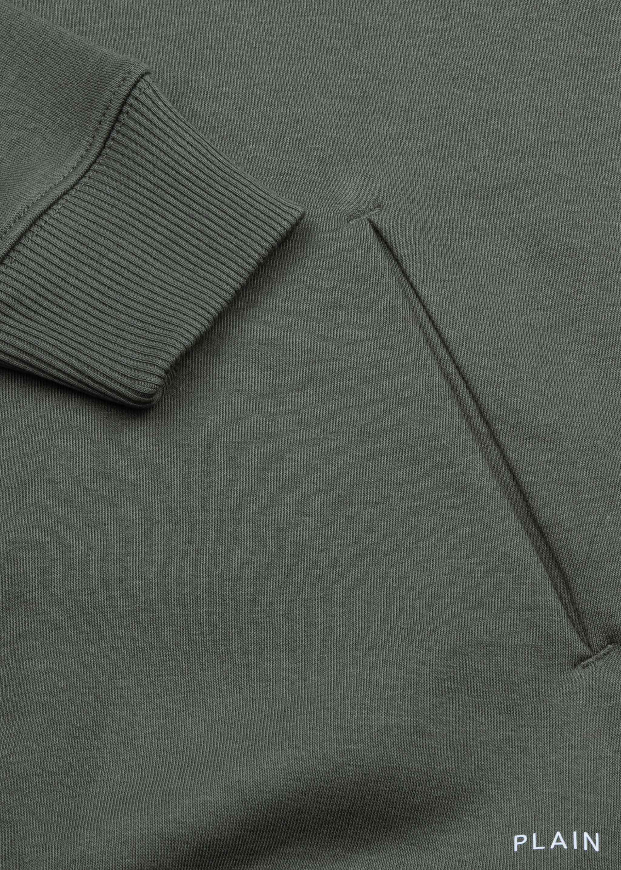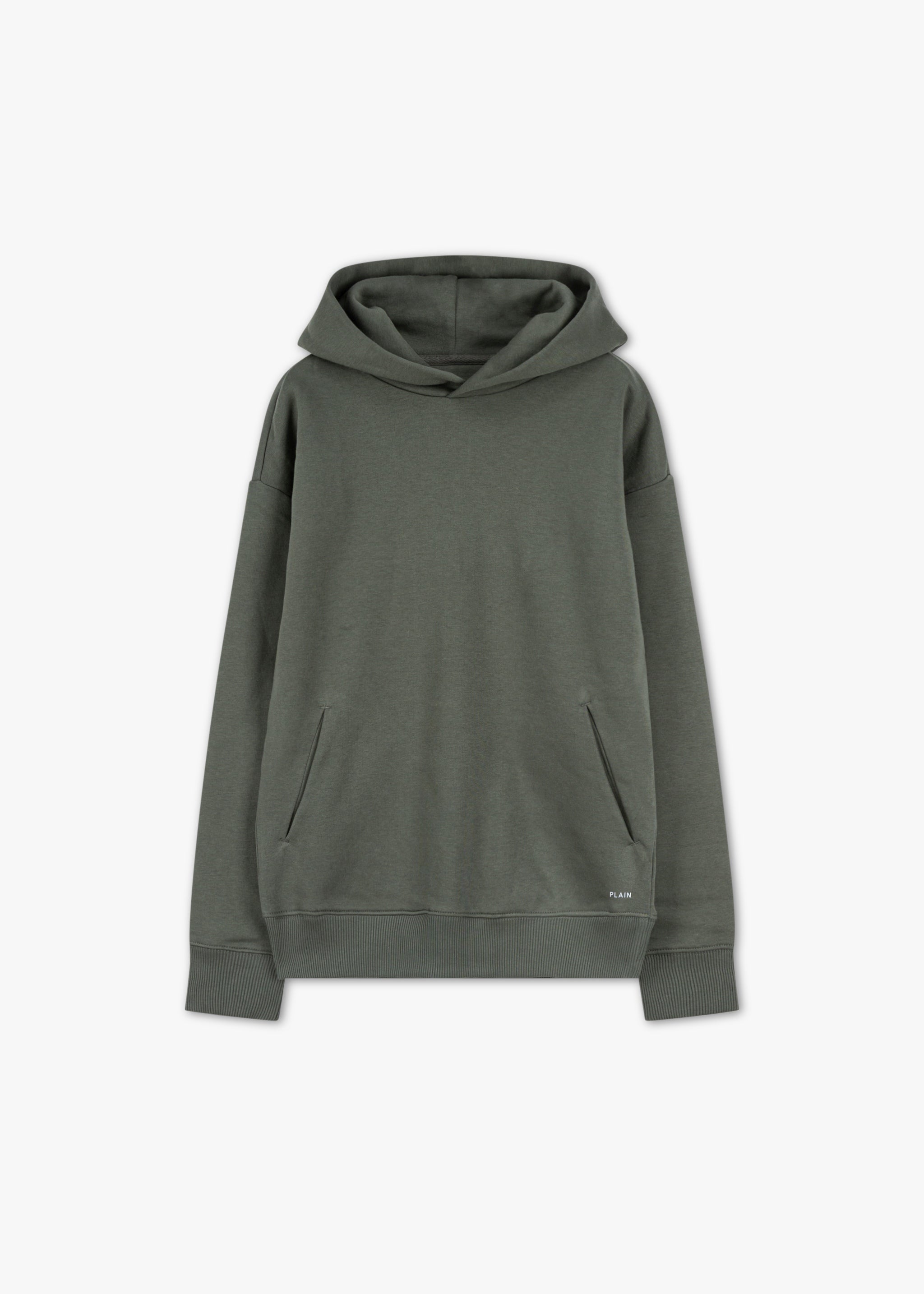 Unisex hoodie from PLAIN made of soft organic cotton, hood, fluffy inside, dropped shoulders, side pockets, straight hem with small logo print, ribbed cuffs.
