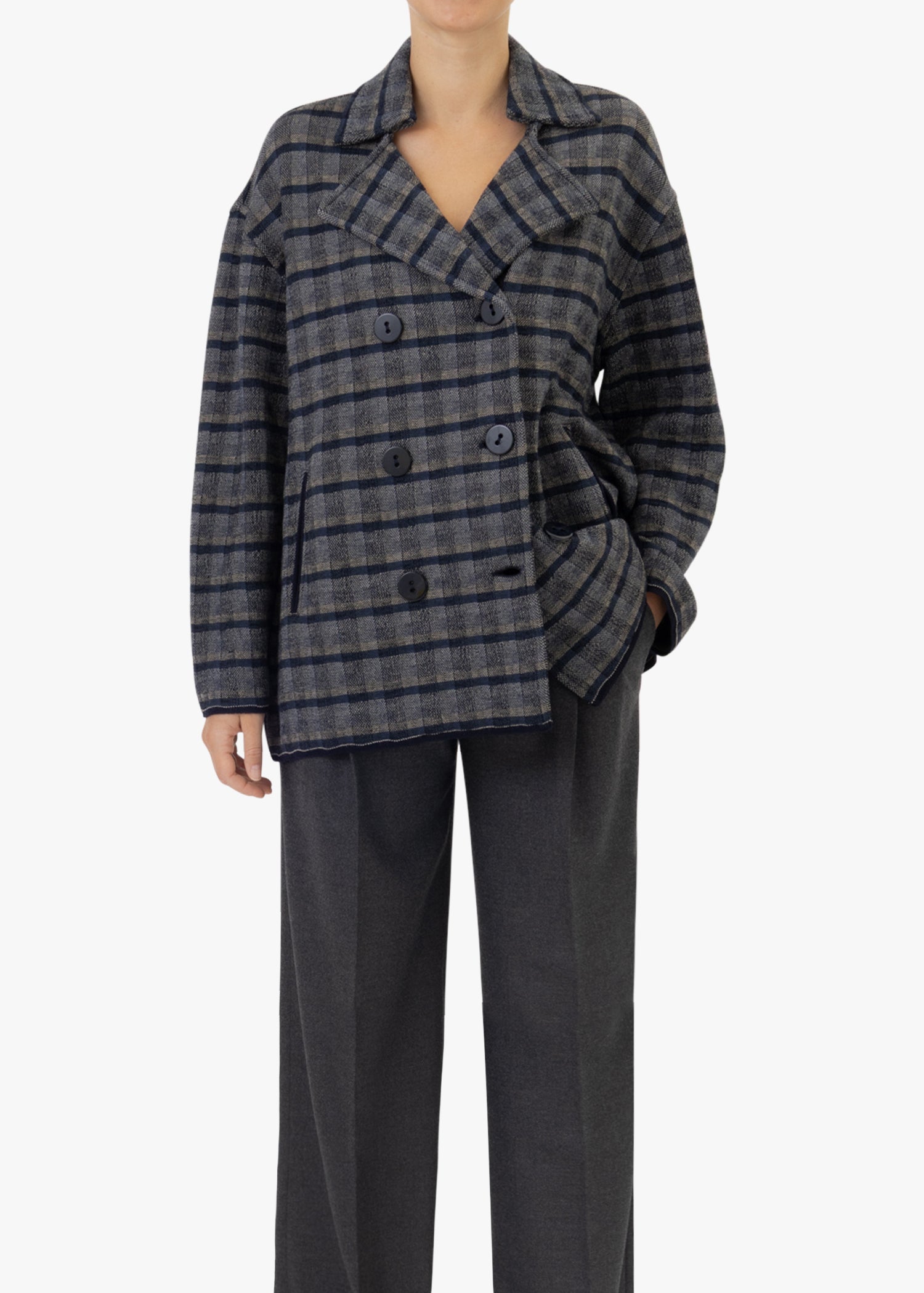 • Color: blue-beige checked