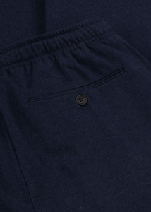 Cropped trousers 'Peyo' by Hartford made of soft wool flannel, elastic waistband with drawstring, mock slit, pressed pleats, side pockets, and piped back pockets.