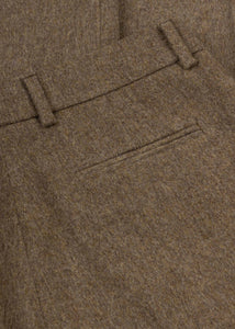 Slightly cropped trousers 'Teodora' by Quelle Due made of fine new wool flannel, belt loops, button and zipper closure with inside hook, pressed pleats, side pockets, two back pockets.
