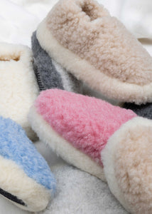 Yoko 'Sheep by the Sea' wool slippers with a non-slip sole.