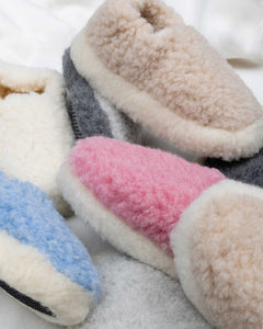 Yoko 'Sheep by the Sea' wool slippers with a non-slip sole.
